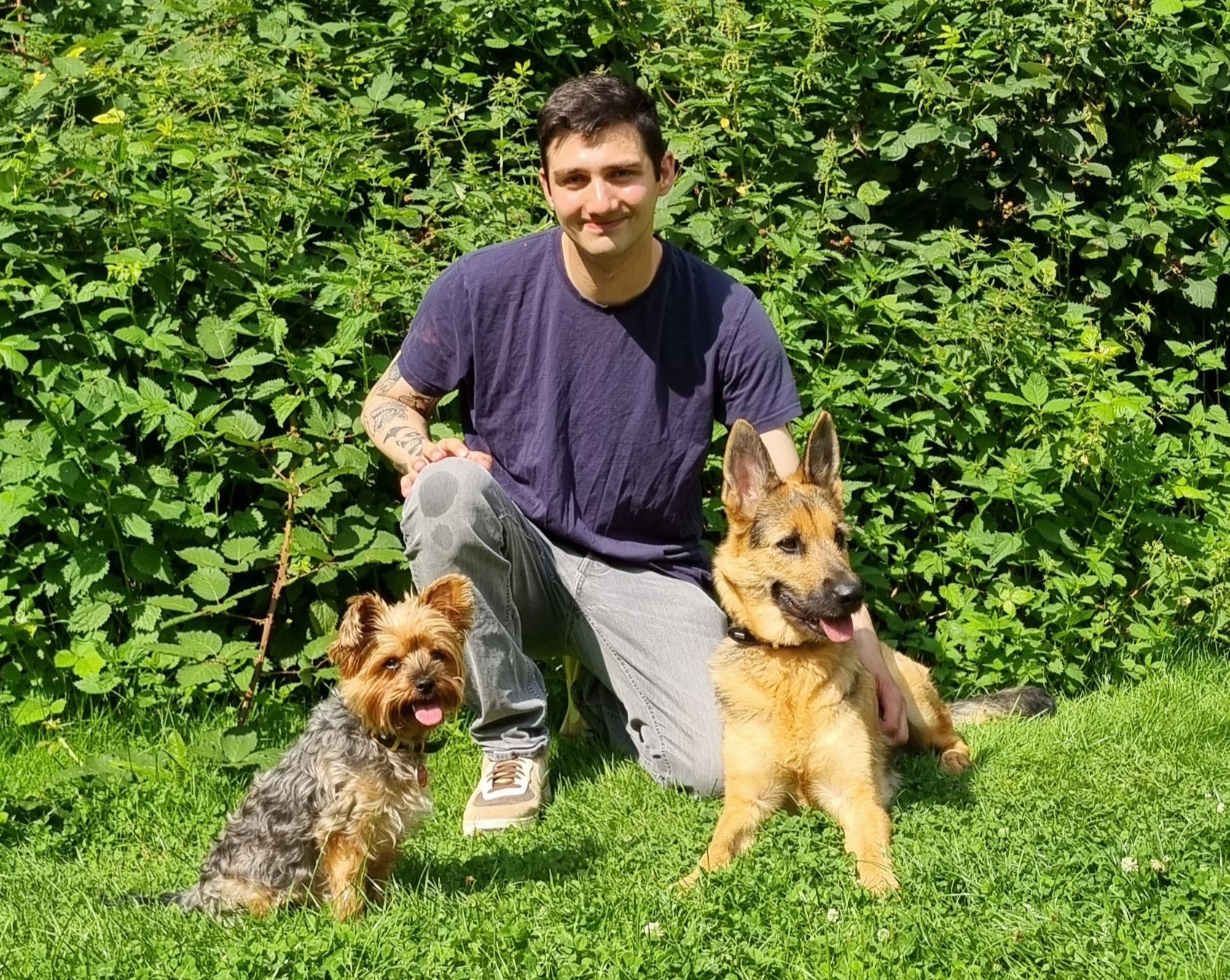 Ich bin ein Mix aus Deutschem Schäferhund, Deutscher Dogge und Riesenschnauzer und kam als Zweithund zu Tuna, nachdem meine vorherige Familie überfordert mit mir war.